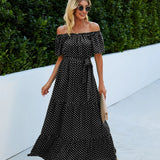 Featuring a straight neck collar and regular short sleeves, this jumpsuit combines style with breathability, ensuring you stay cool while looking chic. The playful polka dot pattern adds a touch of fun to your wardrobe, making it an ideal choice for casual outings or summer parties.